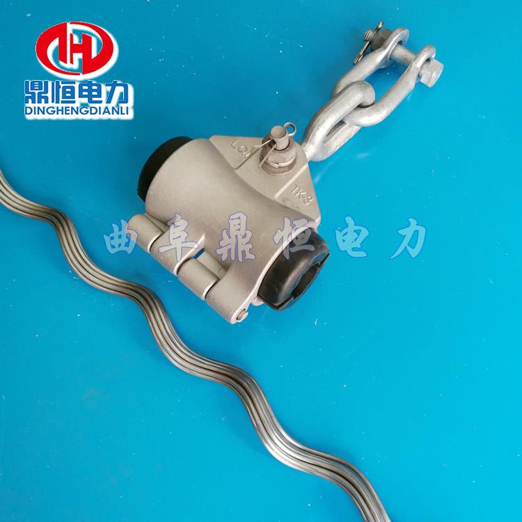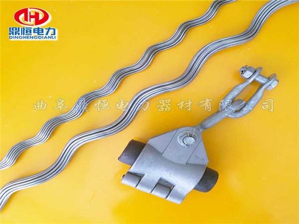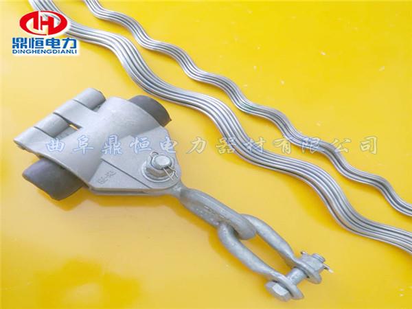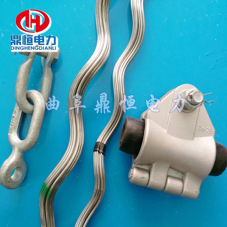 預(yù)絞式懸垂線夾由橡膠制成的雙曲線腰鼓形包箍,包箍外纏繞鋁合金預(yù)絞絲,在預(yù)絞絲外裝以鋁合金制成的懸掛線夾加上配件組成;預(yù)絞式懸垂線夾具有強(qiáng)度高、握力大、重量輕、磁損小的特點(diǎn),可用于重冰及檔距較大的地區(qū)。