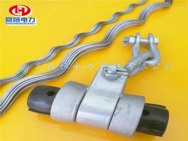2、ADSS懸垂線夾內(nèi)部結(jié)構(gòu)配以柔性橡膠塊,增強(qiáng)自阻尼使磨損減小有較好的動(dòng)態(tài)應(yīng)力承受能力,可提供足夠的握緊力來保護(hù)ADSS光纜在不平衡負(fù)載的條件下安全運(yùn)行。